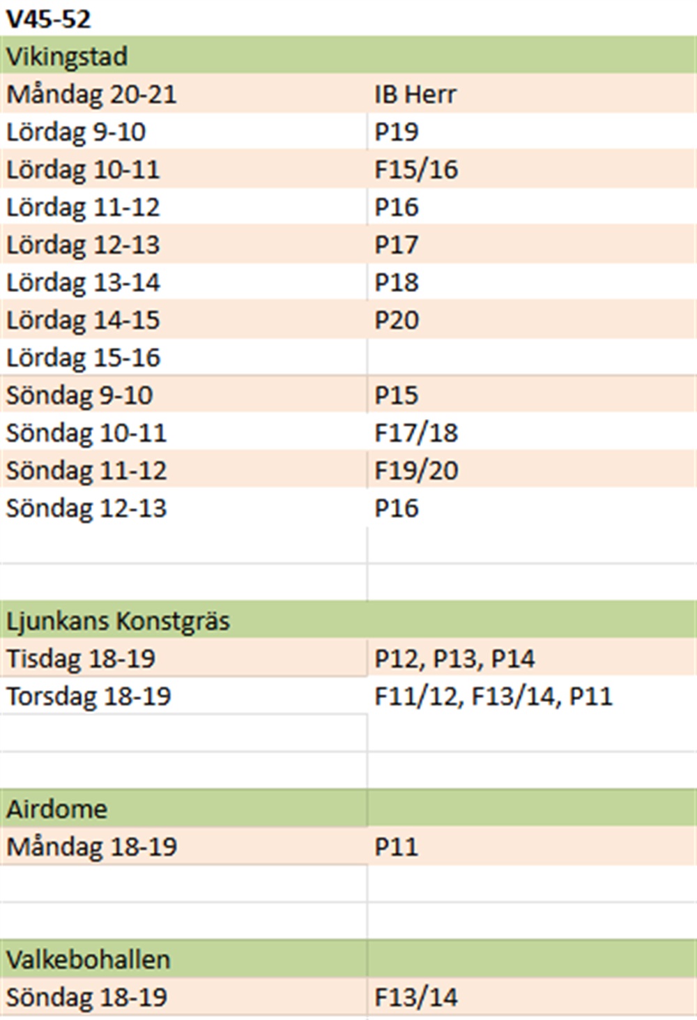 Tiderna gäller från och med vecka 45-52 2025